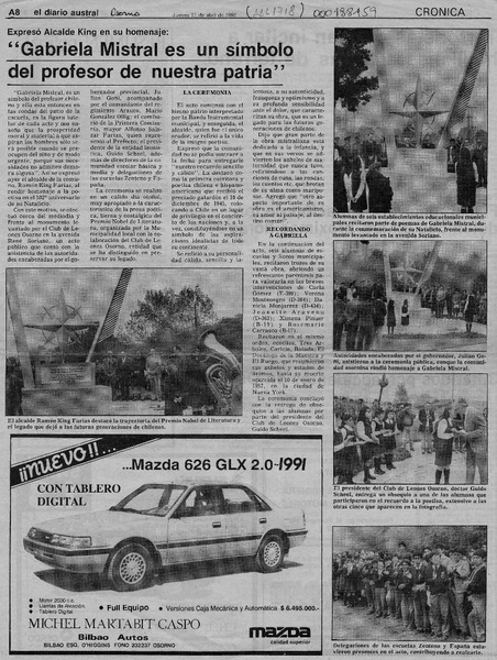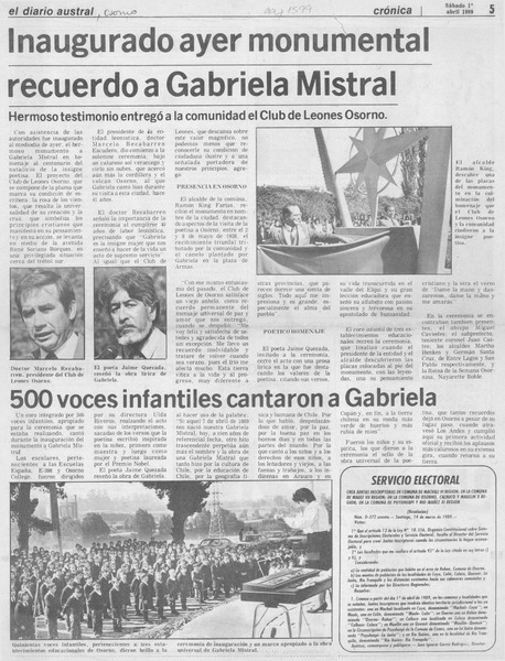 Club de Leones inaugurará monumento a Gabriela Mistral [artículo].