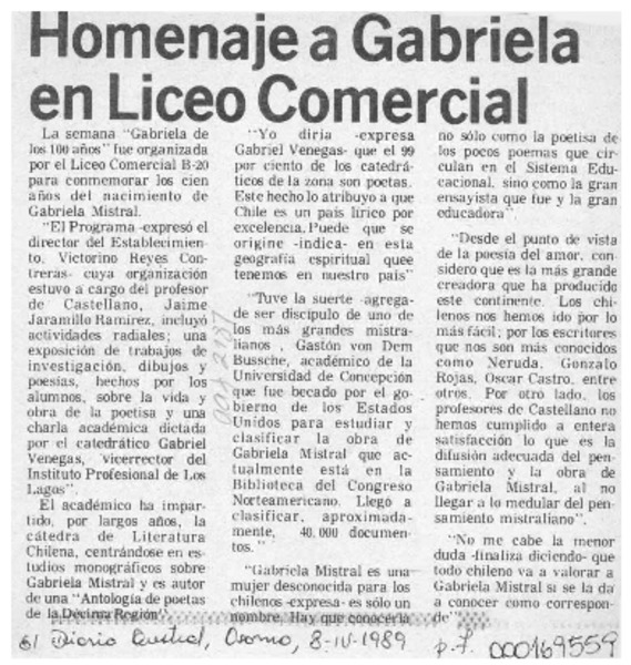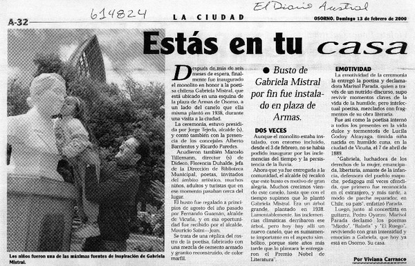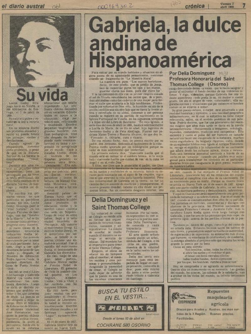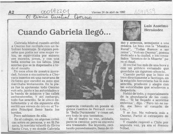 Cuando Gabriela llegó -- [artículo] Luis Anselmo Hernández.