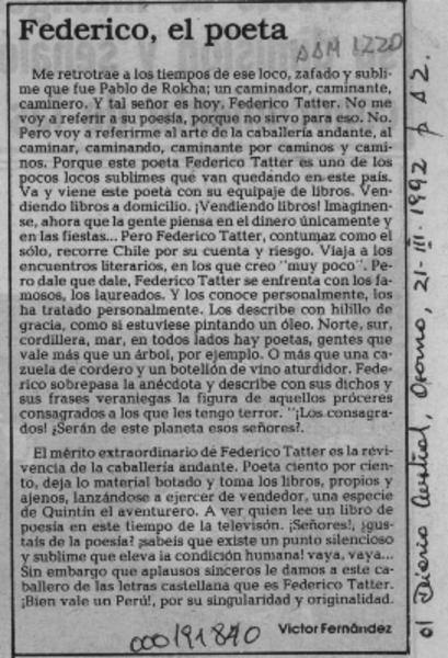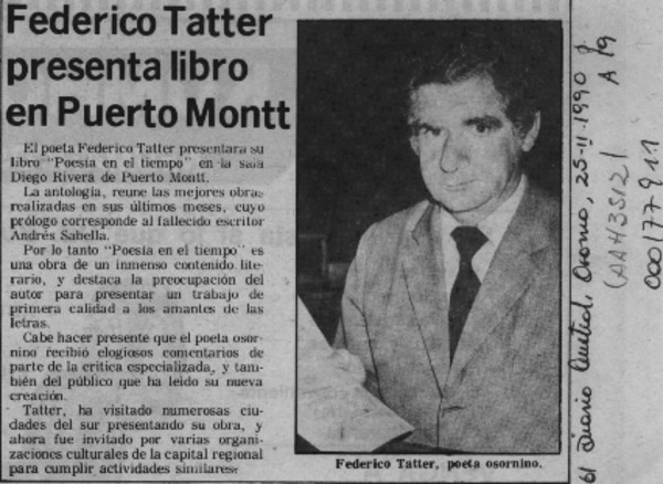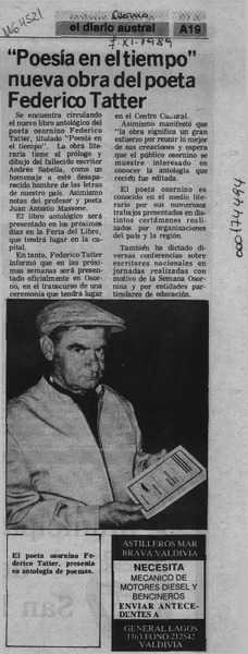 "Poesía en el tiempo" nueva obra del poeta Federico Tatter [artículo].