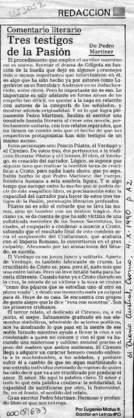 Tres testigos de la pasión [artículo] Eugenio Matus R.