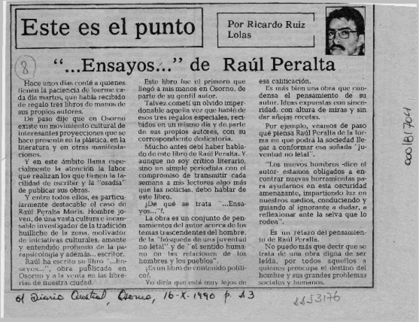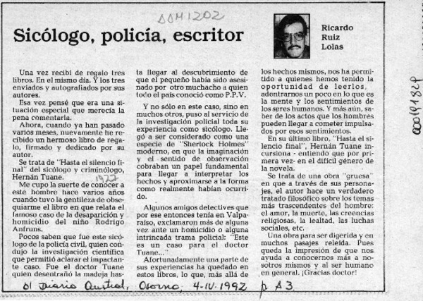 Sicólogo, policía, escritor [artículo] Ricardo Ruiz Lolas.