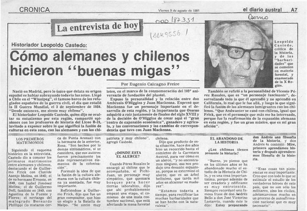 Cómo alemanes y chilenos hicieron "buenas migas" [artículo] Eugenio Calcagno Freire.