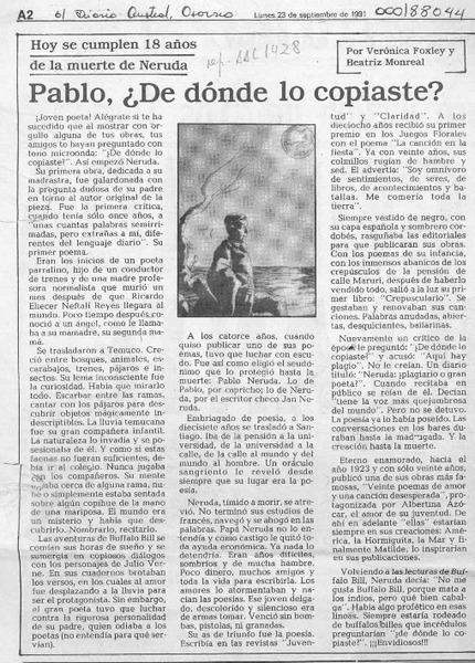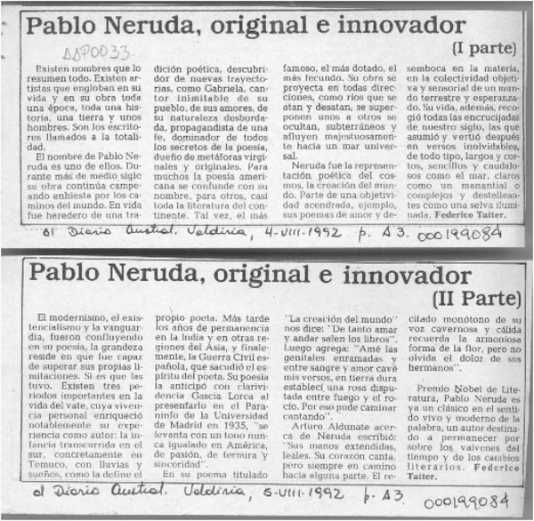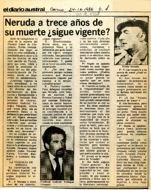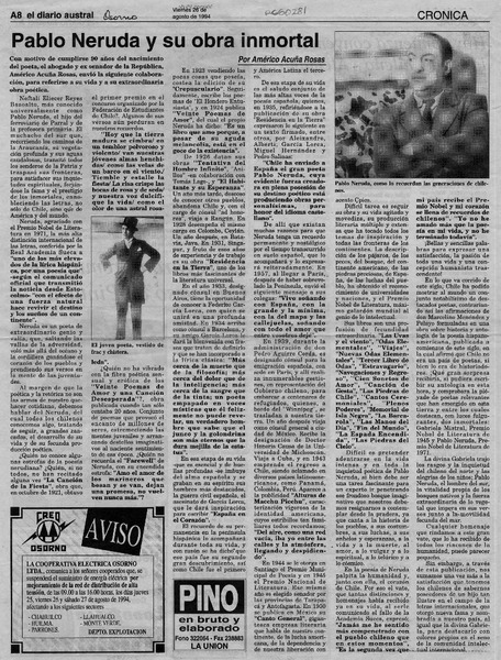 Académico Martín Panero, "Pablo Neruda, uno de los grandes poetas mundiales" [artículo].