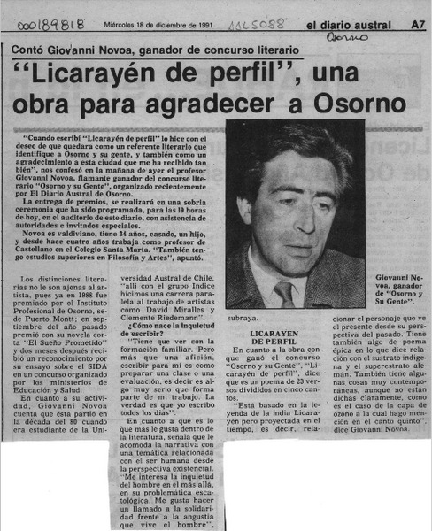 "Licarayén de perfil", una obra para agradecer a Osorno [artículo].