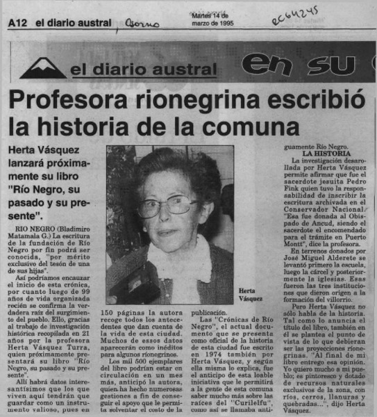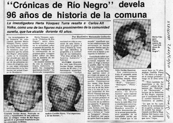 Autores chilenos - Vásquez Turra, Herta - Río negro, su pasado y su presente