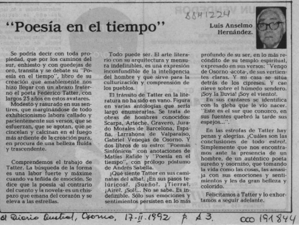 "Poesía en el tiempo" [artículo] Luis Anselmo Hernández.