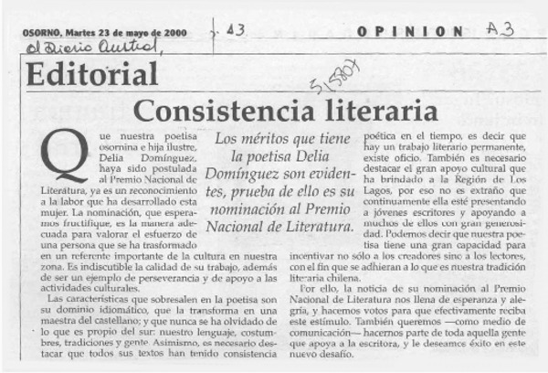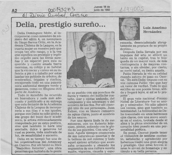 Delia, prestigio sureño -- [artículo] Luis Anselmo Hernández.