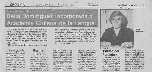 Delia Domínguez ingresa a Academia de la Lengua [artículo].