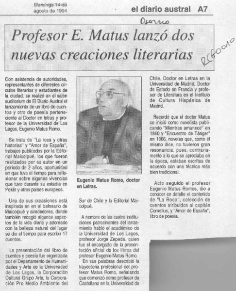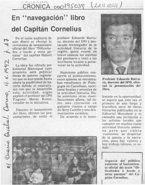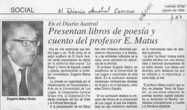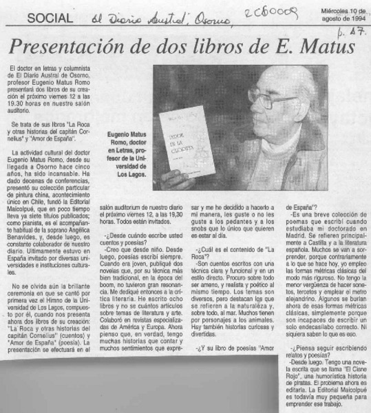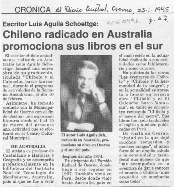 Chileno radicado en Australia promociona sus libros en el sur [artículo].