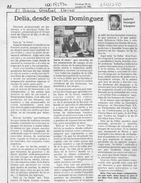 Delia, desde Delia Domínguez [artículo] Gabriel Venegas Vásquez.