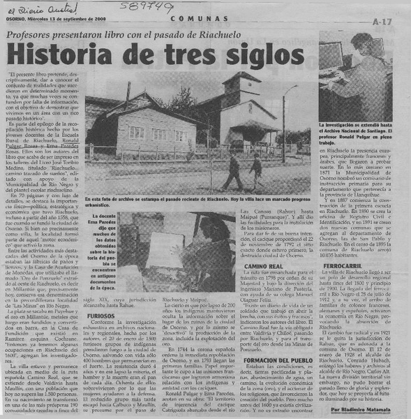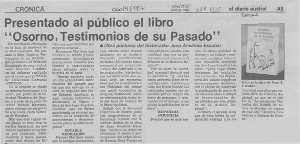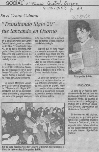"Transitando siglo 20" fue lanzado en Osorno [artículo].