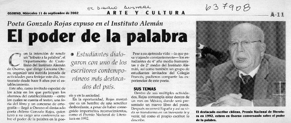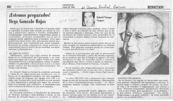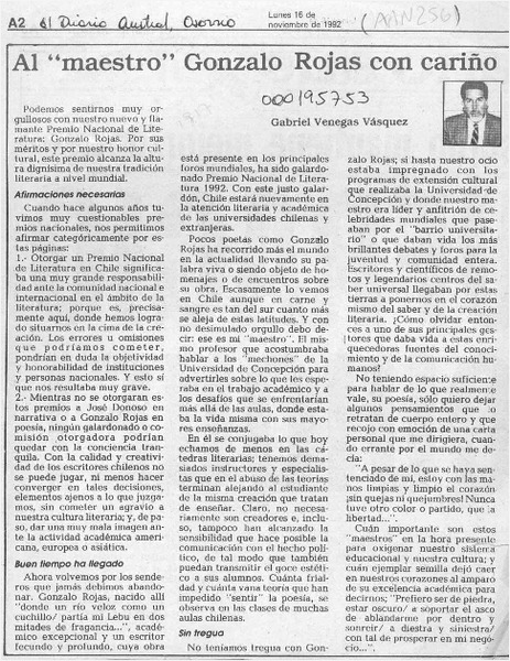 Al "maestro" Gonzalo Rojas con cariño [artículo] Gabriel Venegas Vásquez.