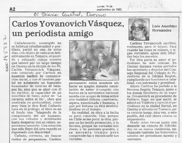 Carlos Yovanovich Vásquez, un periodista amigo [artículo] Luis Anselmo Hernández.
