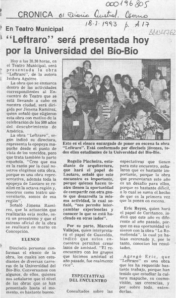 "Leftraro" será presentado hoy por la Universidad del Bío-Bío [artículo]
