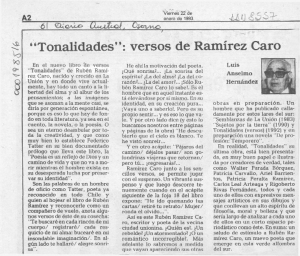 "Tonalidades", versos de Ramírez Caro [artículo] Luis Anselmo Hernández.
