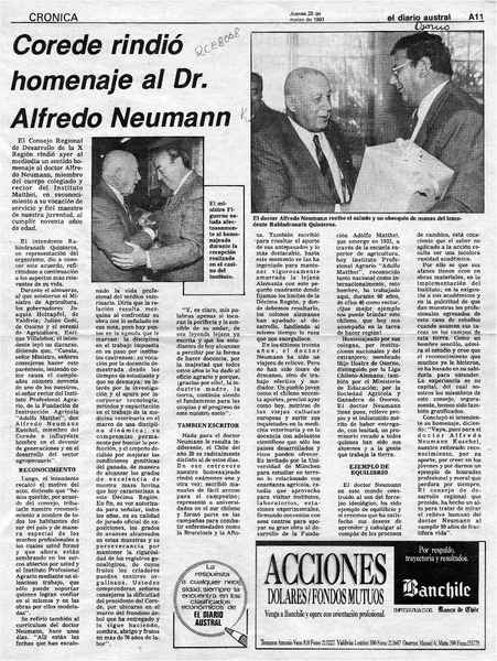Corede rindió homenaje al Dr. Alfredo Neumann [artículo].