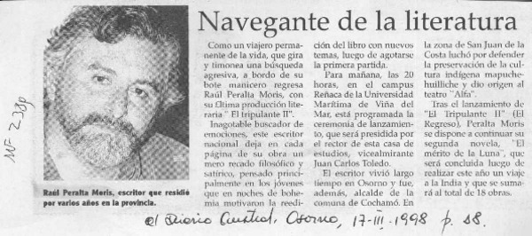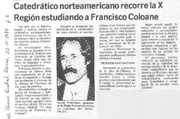 Catedrático norteamericano recorre la X Región estudiando a Francisco Coloane [artículo].