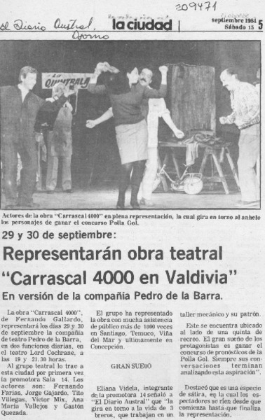 Representarán obra teatral "Carrascal 4000" en Valdivia [artículo]