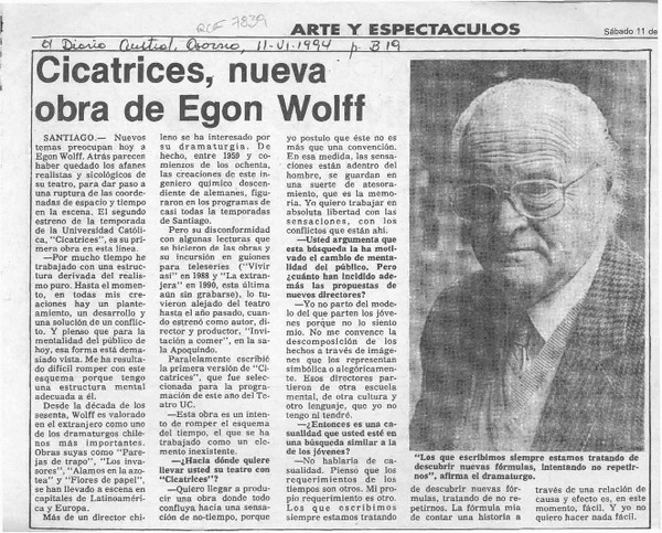 Cicatrices, nueva obra de Egon Wolff [artículo].