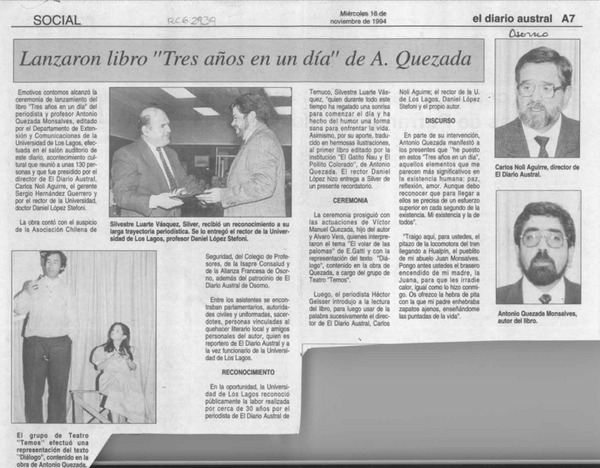 QUEZADA MONSALVES, ANTONIO - TRES AÑOS EN UN DIA