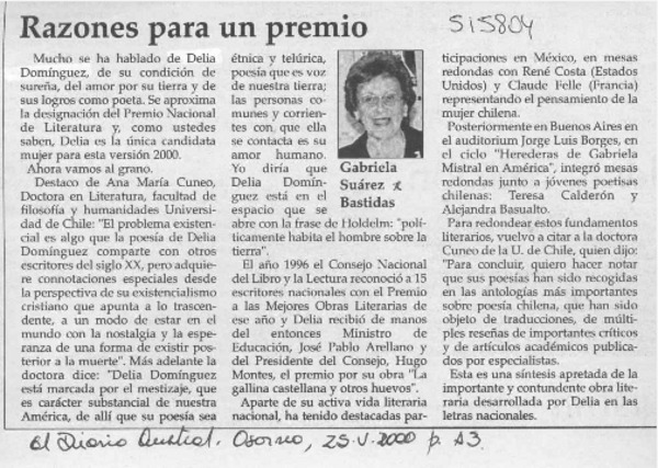 Razones para un premio [artículo] Gabriela Suárez Bastidas