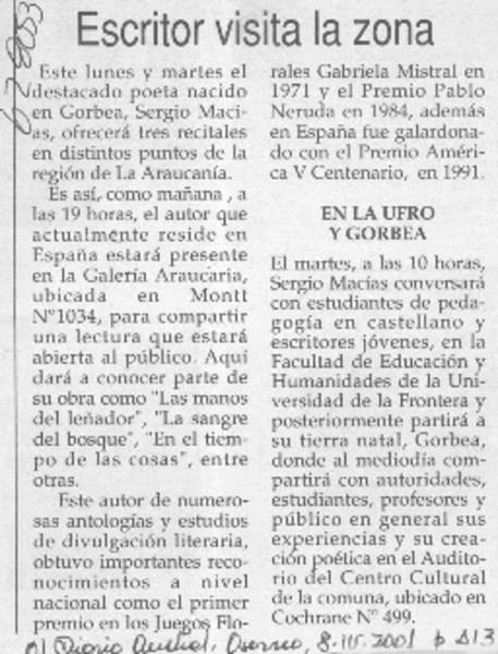 Universidad de Los Lagos distinguió a escritores [artículo].