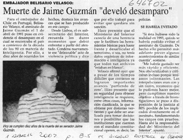 Conmemoran asesinato del senador Jaime Guzmán [artículo]