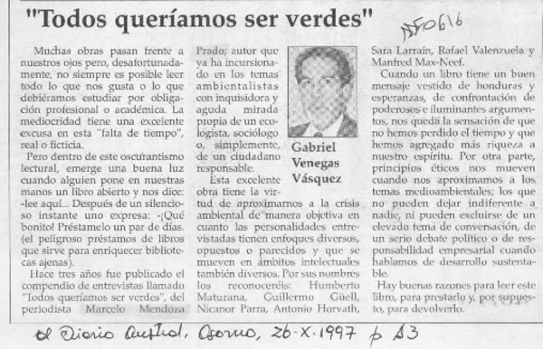 "Todos queríamos ser verdes" [artículo] Gabriel Venegas Vásquez.