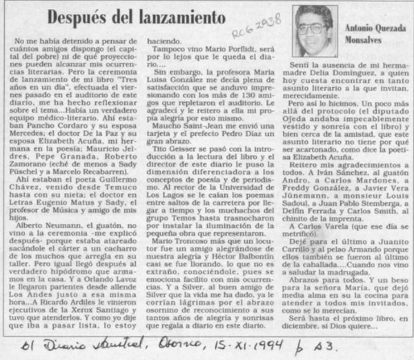 Después del lanzamiento [artículo] Antonio Quezada Monsalves.
