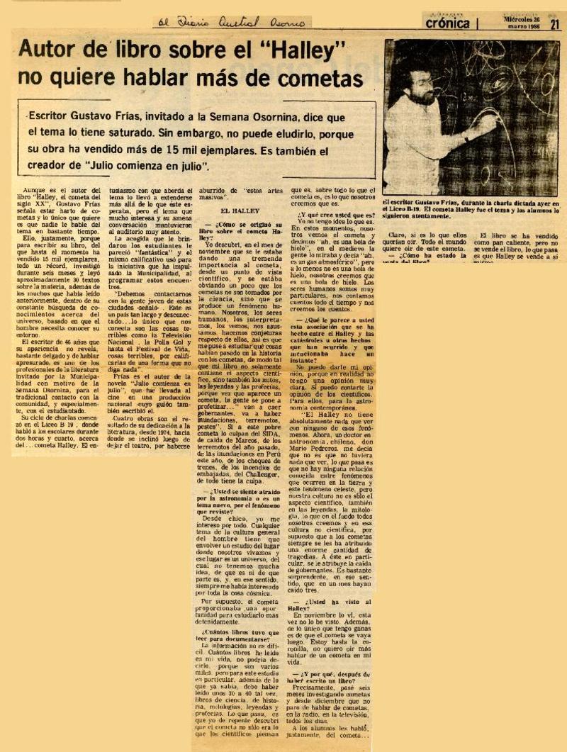 Autor de libro sobre el "Halley" no quiere hablar más de cometas [artículo].