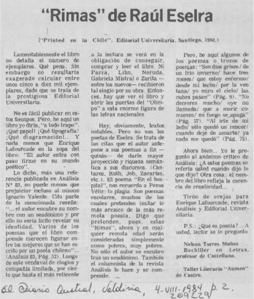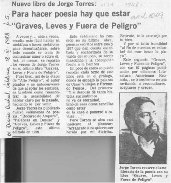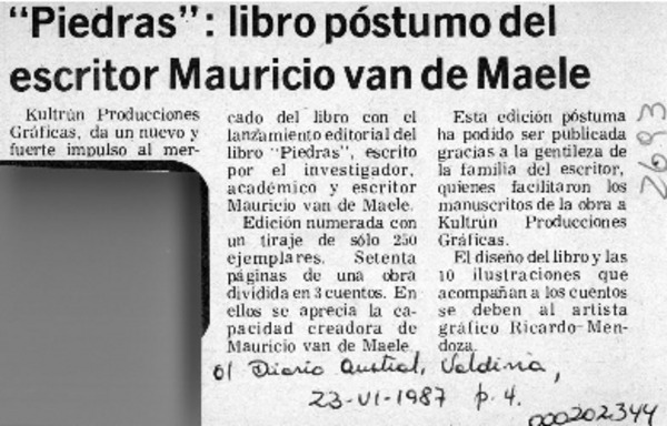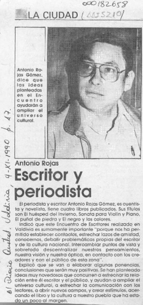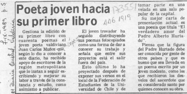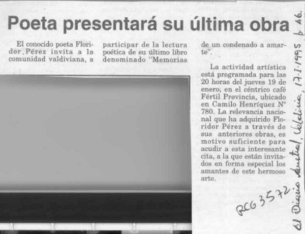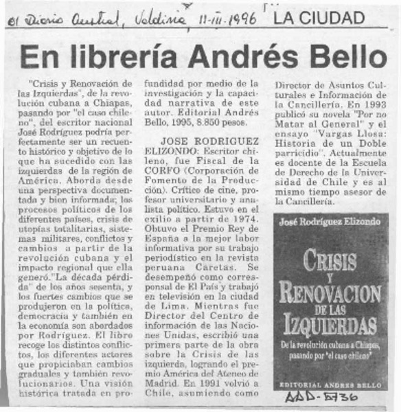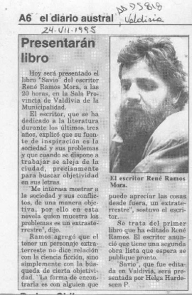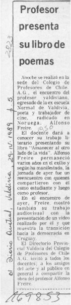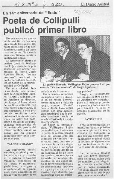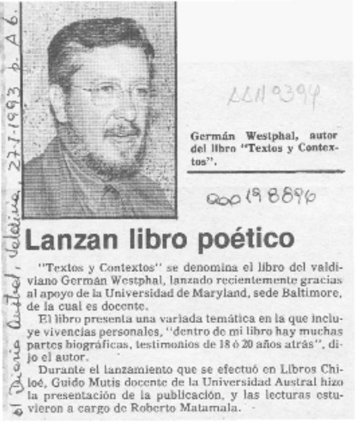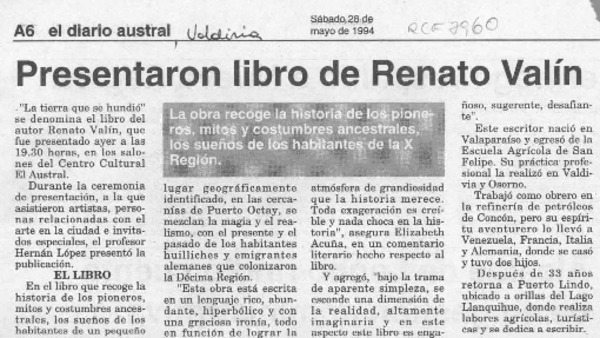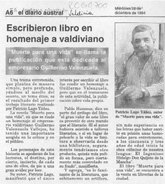 Un nuevo libro lanza escritor de La Unión [artículo] Eliana Azócar.