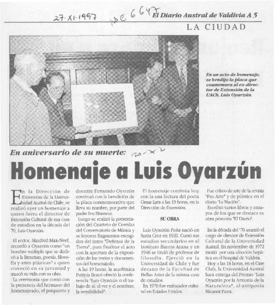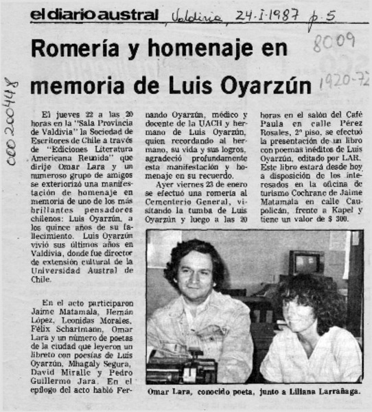 Romería y homenaje en memoria de Luis Oyarzún [artículo].