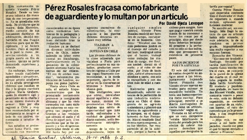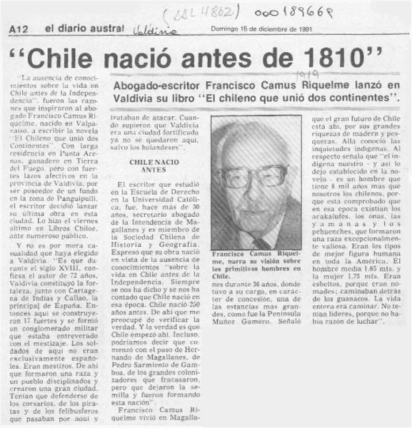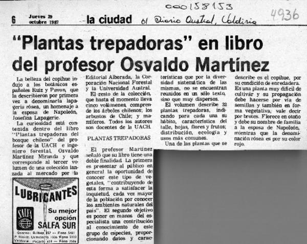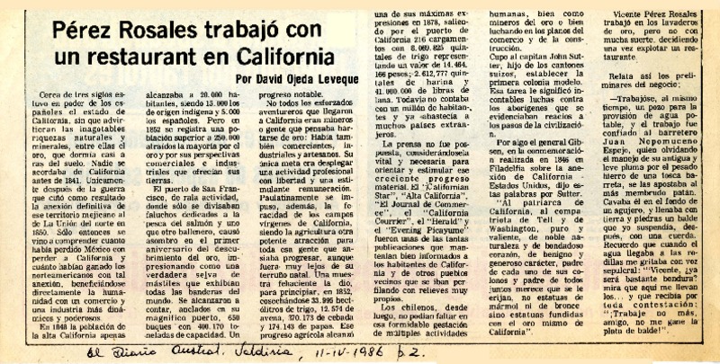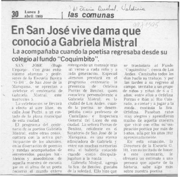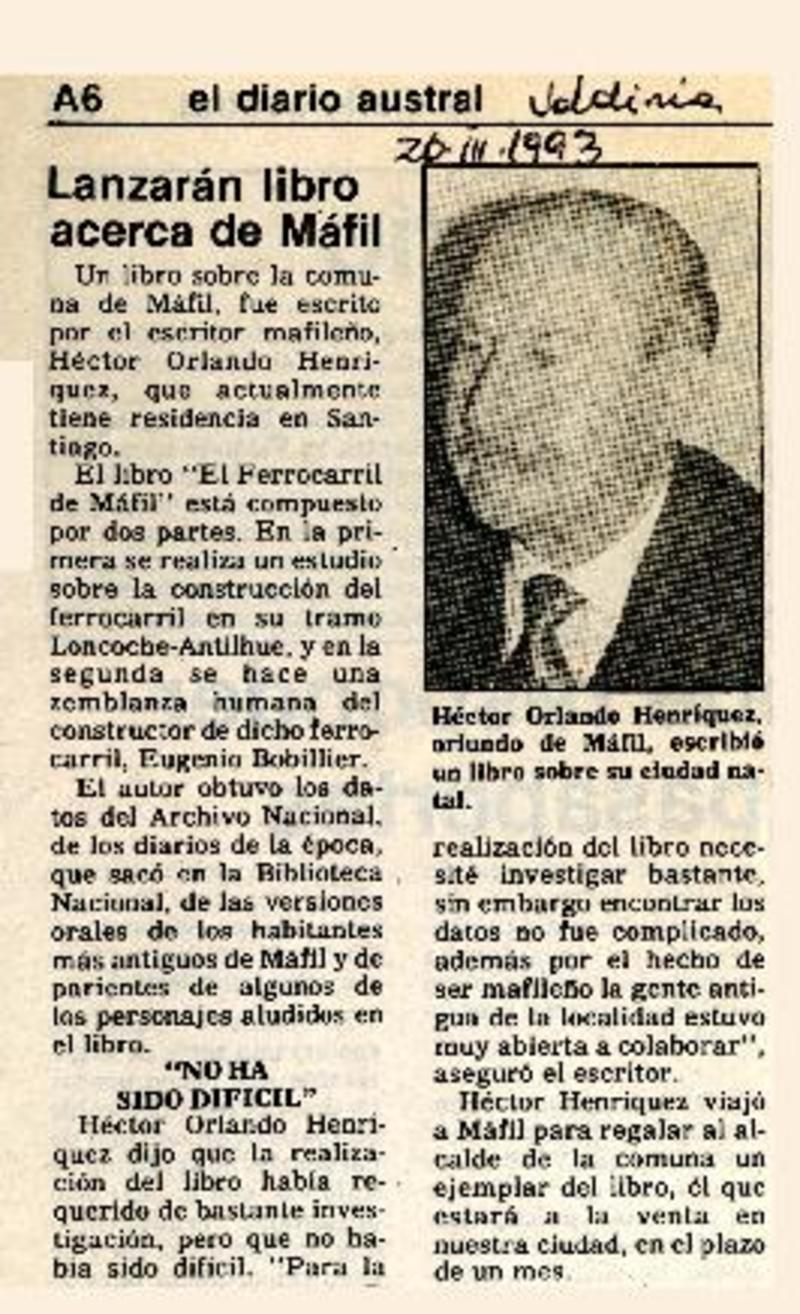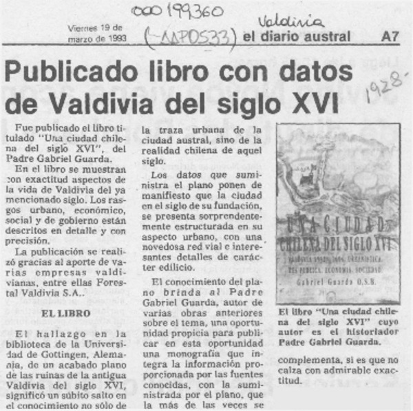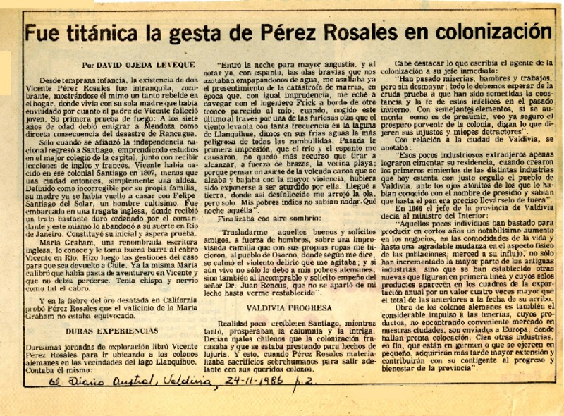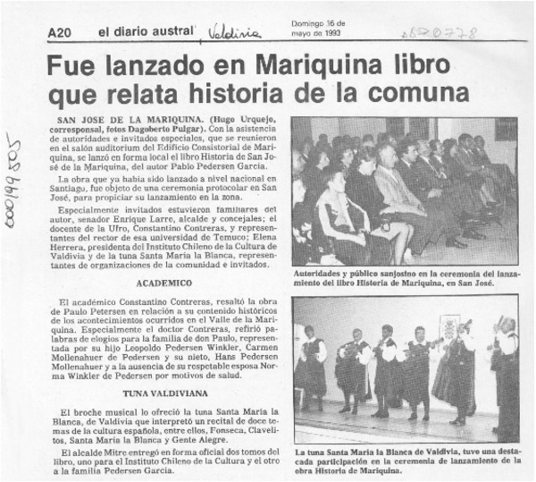 Apareció la historia de San José de la Mariquina [artículo] Mario Ochoa P.