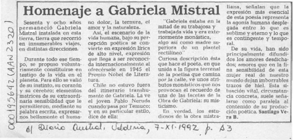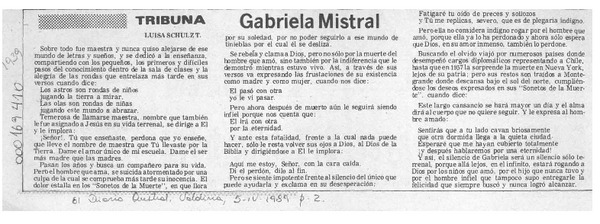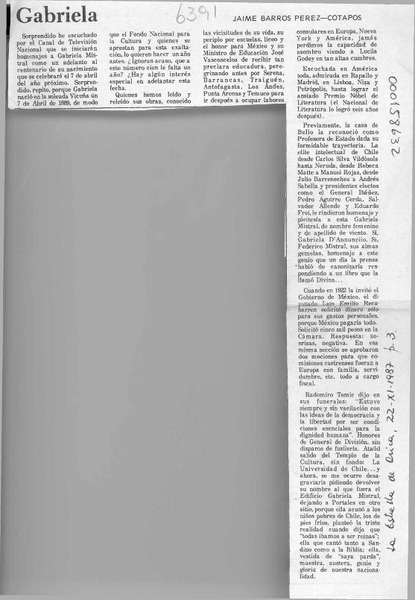 Aproximación a Gabriela Mistral [artículo] Federico Tatter
