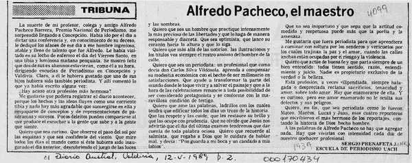 Alfredo Pacheco, el maestro [artículo] Sergio Prenafeta J.