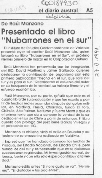 Un orgullo cultural para Valdivia [artículo] Ana Alonso.