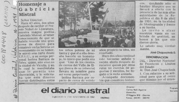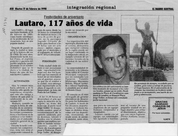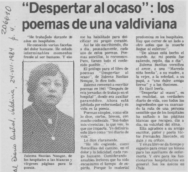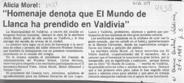 Alicia Morel, "Homenaje denota que El Mundo de Llanca ha prendido en Valdivia" [artículo].