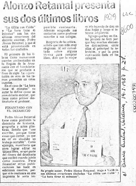 Alonzo Retamal presenta sus dos últimos libros [artículo].