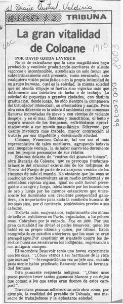 Coloane, la pasión del mar [artículo] Augusto Sanhueza Vergara.