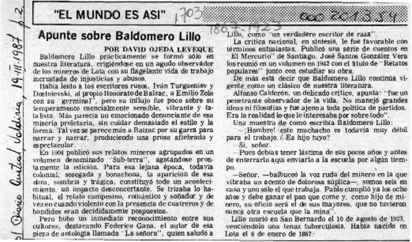 Apunte sobre Baldomero Lillo [artículo] David Ojeda Leveque.