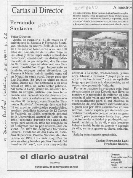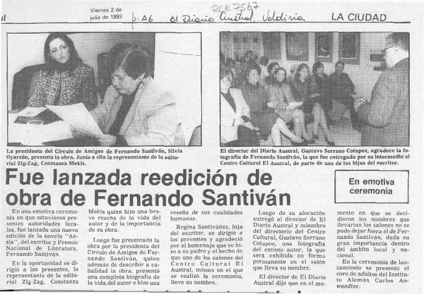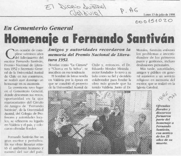 Solemnidad en los homenajes a escritor Fernando Santiván [artículo].