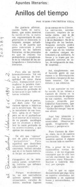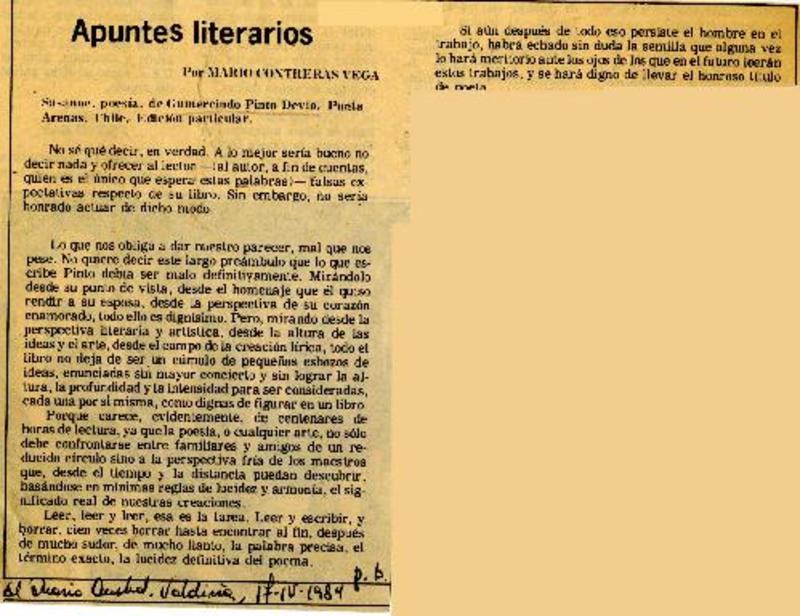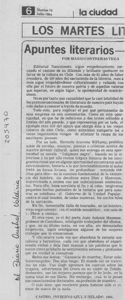 Apuntes literarios [artículo] Mario Contreras Vega.