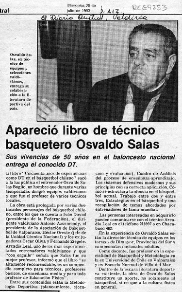 Apareció libro de técnico basquetero Osvaldo Salas [artículo].