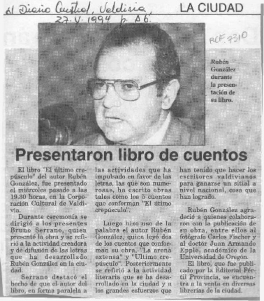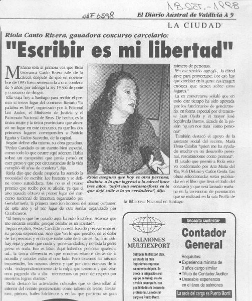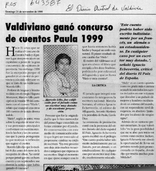 Valdiviano ganó concurso de cuentos Paula 1999 [artículo]