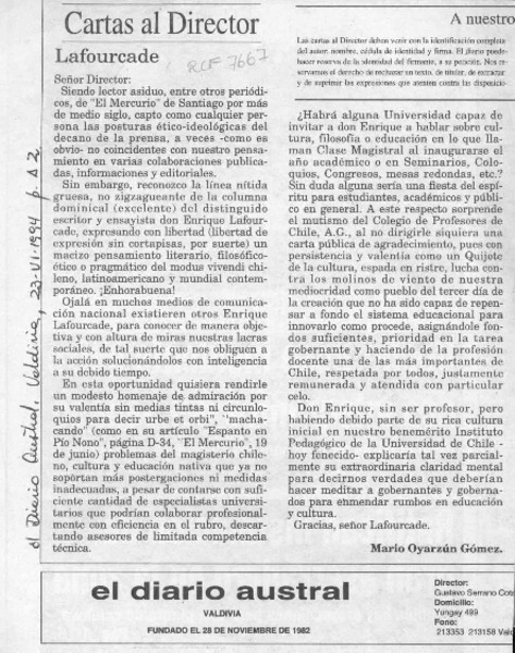 Cartas al director [artículo] Beliver Imilán Alvarez.