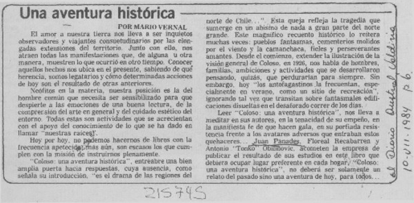 Coloane, una historia viviente [artículo] Ricardo Triviño Frías