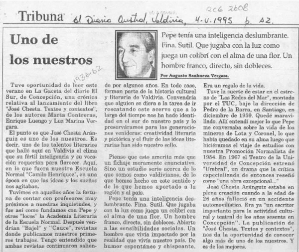 Uno de los nuestros [artículo] Augusto Sanhueza Vergara.
