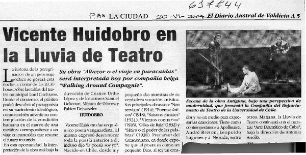Vicente Huidobro en la lluvia de Teatro [artículo]