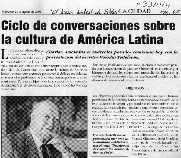 Ciclo de conversaciones sobre la cultura de América Latina [artículo]