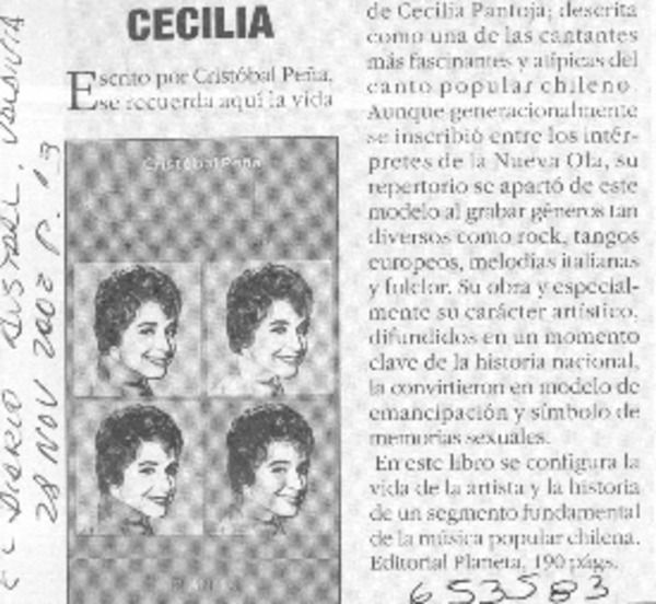 Autores chilenos - Cecilia, la vida en llamas - Peña, Juan Cristóbal